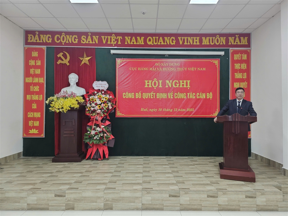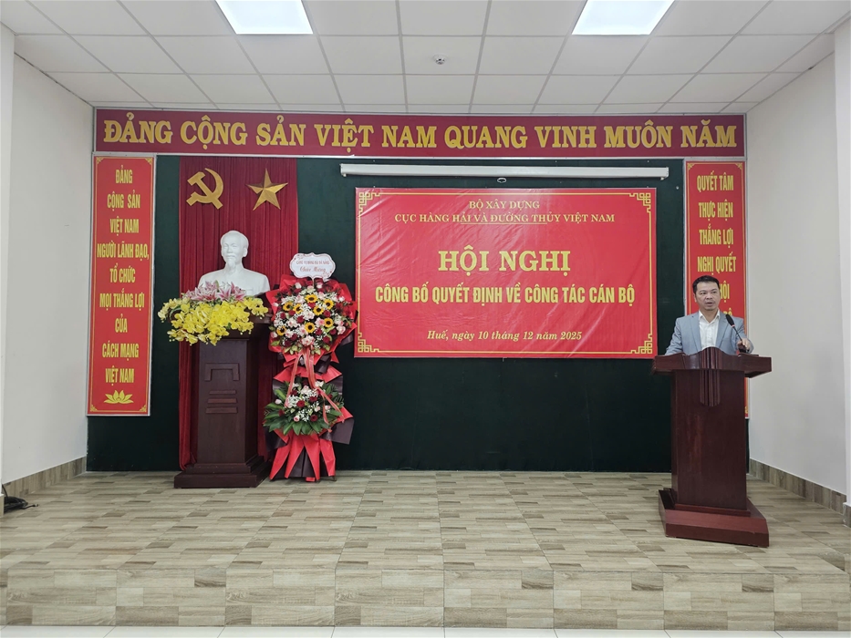 Thay mặt Cục Hàng hải và Đường thủy Việt Nam, đồng chí Lê Minh Đạo, Ủy viên Ban Thường vụ Đảng ủy, Phó Cục trưởng đã trao Quyết định giao Quyền Giám đốc Cảng vụ Hàng hải Thừa Thiên Huế cho đồng chí Nghiêm Giang Nam kể từ ngày 10/12/2025.