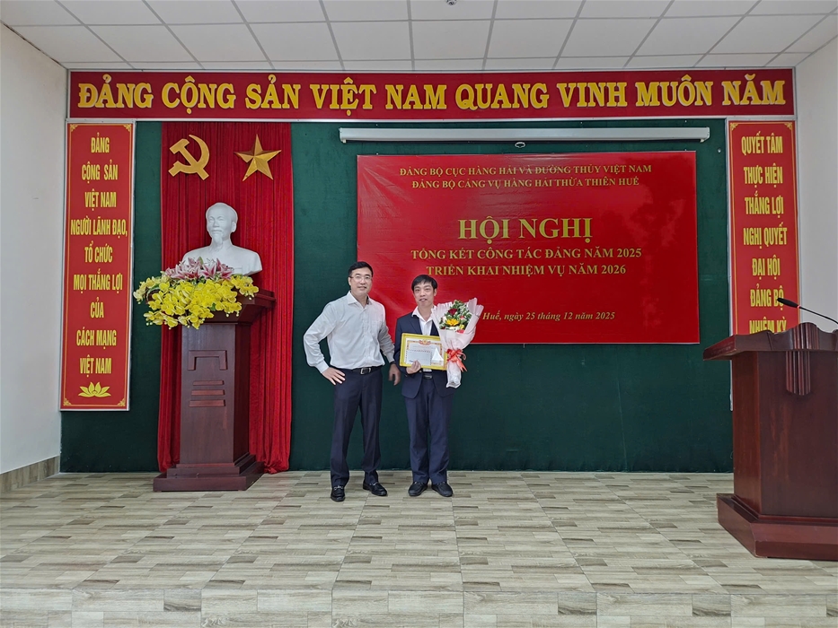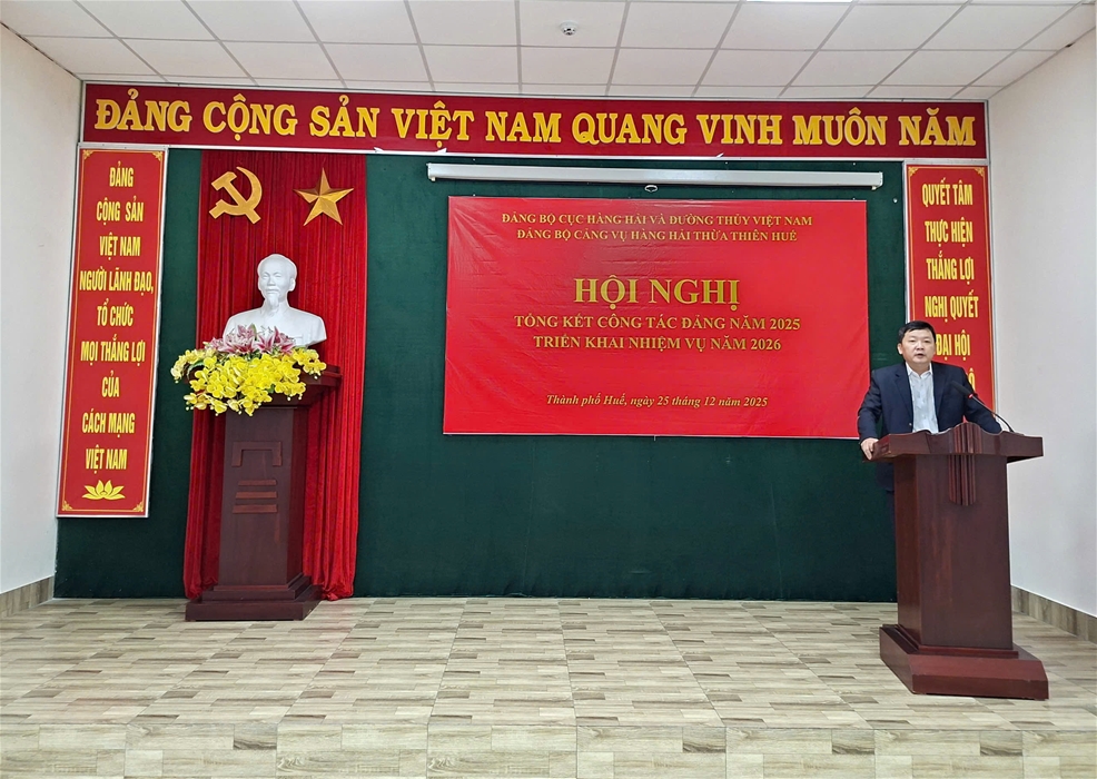 Ngày 25/12/2025, Đảng bộ Cảng vụ Hàng hải Thừa Thiên Huế tổ chức Hội nghị tổng kết công tác Đảng năm 2025, triển khai nhiệm vụ năm 2026 dưới sự chủ trì của đồng chí Nghiêm Giang Nam - Phó Bí thư phụ trách Đảng bộ, Quyền Giám đốc đơn vị.