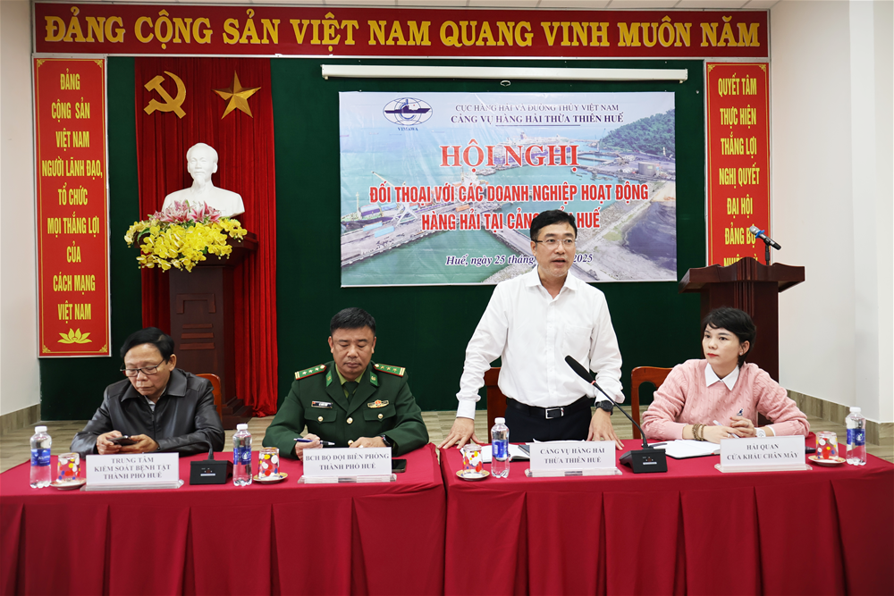 Nhằm tăng cường công tác trao đổi thông tin và kịp thời tiếp thu, tháo gỡ khó khăn, vướng mắc cho các doanh nghiệp hoạt động trong lĩnh vực hàng hải tại thành phố Huế, ngày 25/12/2025, Cảng vụ Hàng hải Thừa Thiên Huế đã chủ trì, phối hợp với các cơ quan quản lý nhà nước chuyên ngành tại cảng biển tổ chức Hội nghị đối thoại với doanh nghiệp hàng hải hoạt động tại cảng biển Huế.